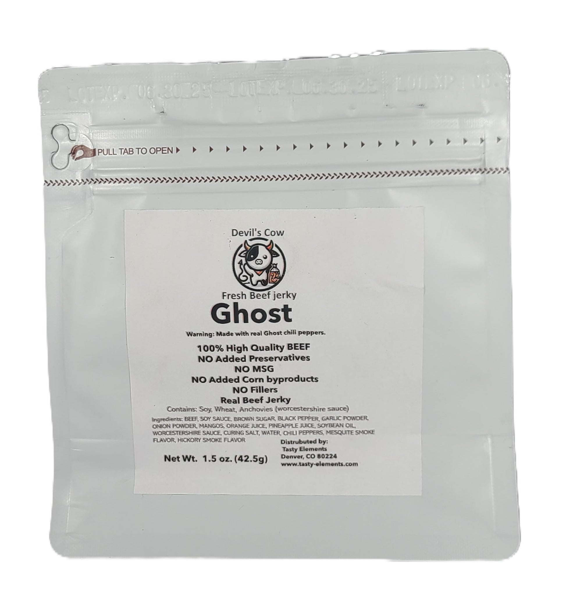 Indulge in the fiery and bold flavors of Devil's Cow beef jerky - Ghost. Made with high quality natural ingredients, this jerky packs a punch with ghost chili peppers. Low in salt and sugar, it is a high-quality snack you can feel good about. Satisfy your cravings with Devil's Cow beef jerky.